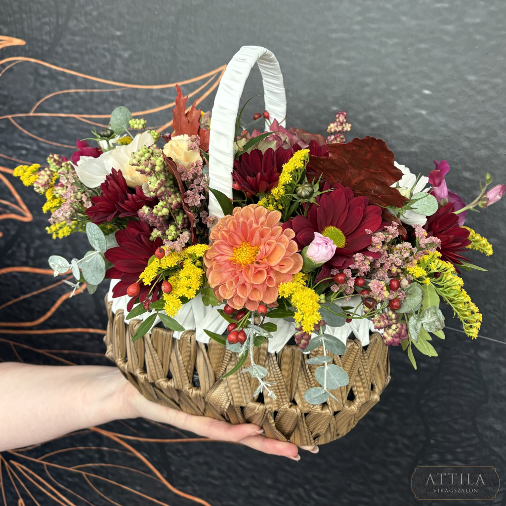 A 18x12,5x24 cm-es kosárban élénk színű friss virágok egész kis kertet alkotnak, hogy örömteli pillanatokat ajándékozzon. Minden szál gondosan válogatott, hogy ünnepi hangulatot teremtsen.